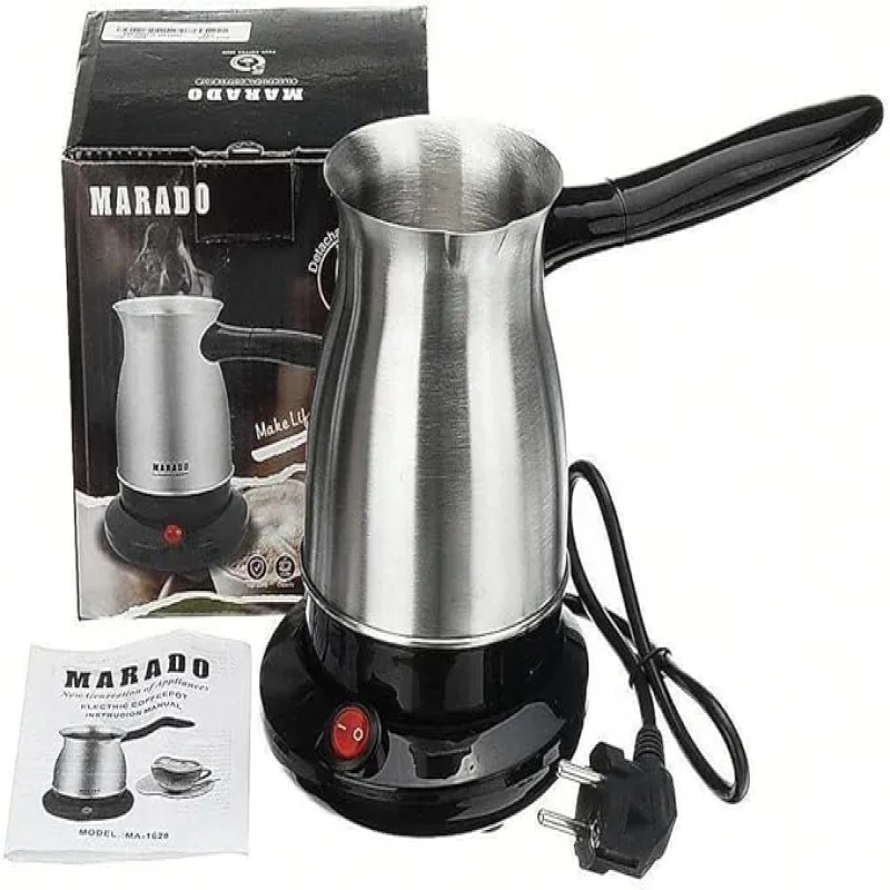 Marado MA-1628 is a budget-friendly electric Turkish coffee maker with a stainless steel body and 600W power. Designed for authentic Turkish, Arabic, or Greek coffee, it offers convenience, safety, and perfect brewing for 5–6 cups (approx. 0.6L).