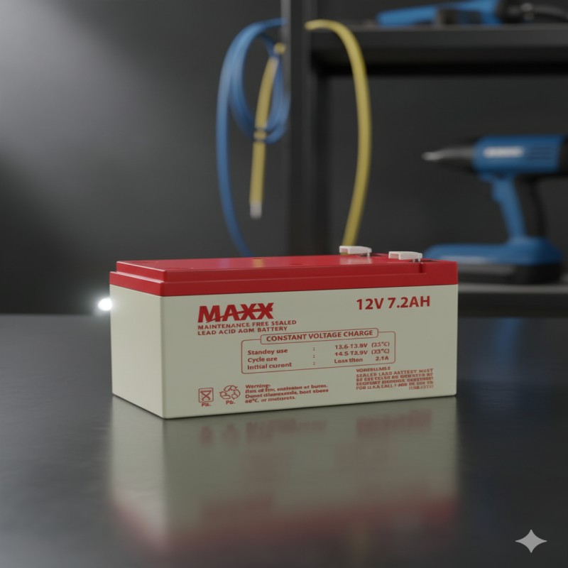 The MAXX 12‑7.2 Battery is a 12V 7.2Ah sealed, maintenance‑free lead‑acid battery designed for reliable and long‑lasting backup power. Its durable VRLA (Valve Regulated Lead Acid) construction ensures no water filling is required, low self‑discharge, and dependable performance across a variety of applications.