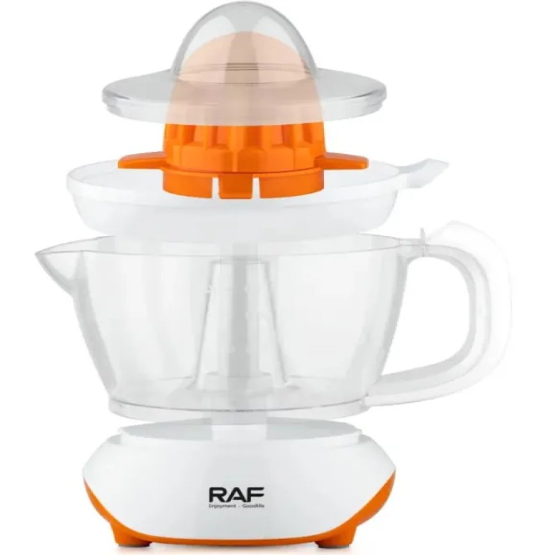 RAF electric citrus juicer designed for fast aur fresh juice extraction. Compact, powerful aur easy to use, perfect for daily household use.